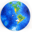 Besides showing the paintings on Social Responsibility, the participants to the Forum intervened his art piece “Intervened Earth = World”, acrylic on 1 meter diameter wood panel.